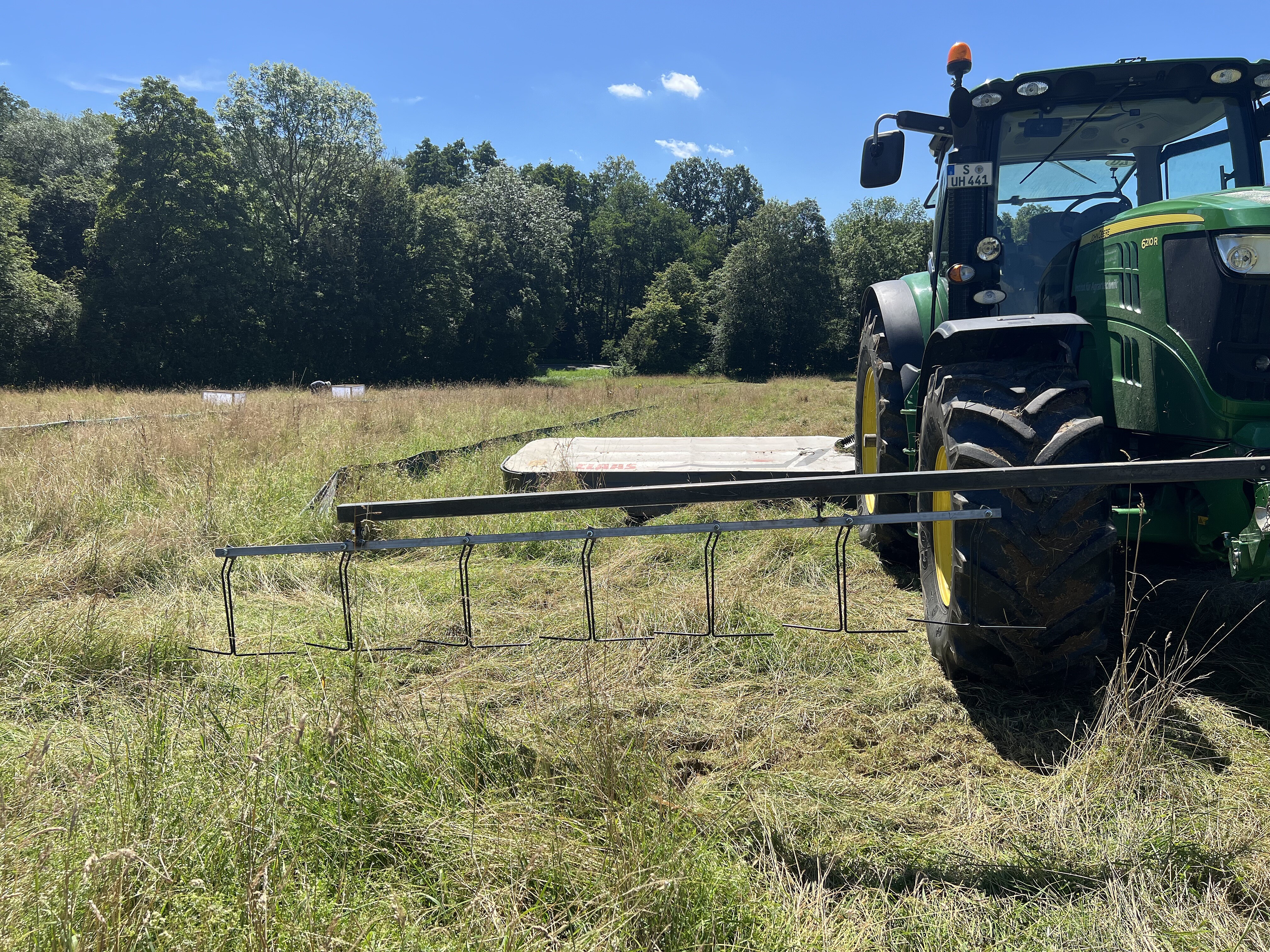 Hierfür werden Insektenscheuchen entwickelt, welche die Spinnen und Insekten gezielt vor dem Mähwerk vergrämen und somit schützen sollen. Basierend auf Voruntersuchungen werden sowohl kostengünstige Metallbügelscheuchen als auch technisch anspruchsvollere Gebläsescheuchen hinsichtlich ihrer Wirksamkeit, Energieeffizienz und Praxistauglichkeit in Kombination mit Scheibenmähwerken optimiert und untersucht. Das Ziel sind Insektenscheuchen, die an moderne, schlagkräftige Scheibenmähwerke angebracht werden können und eine effiziente, aber trotzdem biodiversitätsschonende Mahd ermöglichen.