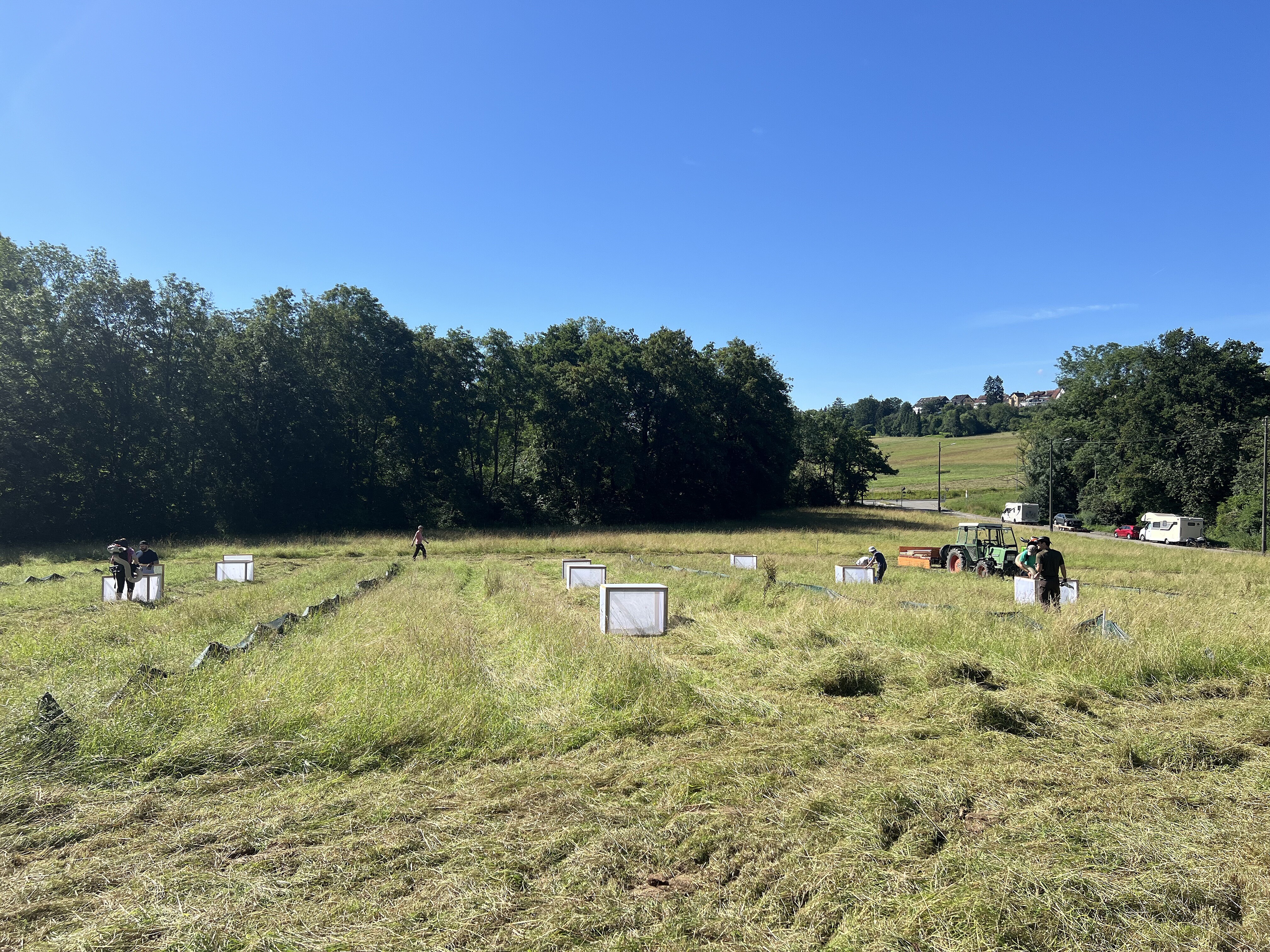 Im Rahmen des Kooperationsprojekts „INSOEL – Insektenscheuchen für den ökologischen Landbau” arbeiten Wissenschaftler:innen der Universitäten Tübingen und Hohenheim zusammen, um die Spinnen- und Insektenvielfalt im ökologisch bewirtschafteten Grünland zu erhalten.